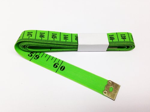 High-quality tailor's tape measure 60 inches/1.5 meters in length. Has inches on one side and metric on the other. Perfect for dieting/weight loss, sewing, and tailoring. Won't stretch or wear out. 10 tape measures per package. Available in green, pink, or white. Ships fast from Toledo, OH, USA.