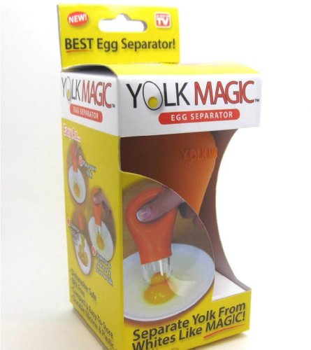 Yolk Magic is the mess-free and easy way to separate the egg yolks from egg whites. Just squeeze and release the silicone bulb and watch as the egg yolk is drawn into the chamber. Squeeze again and the egg yolk is pushed out. Yolk Magic's two piece construction allows for easy cleaning.